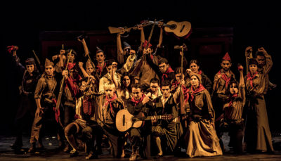 Con un elenco integrado mayoritariamente por jóvenes integrantes de la Escuela de Teatro El Galpón y la dirección de especialistas en teatro comunitario, como Adhemar Bianchi y su hija Ximena Bianchi, cuenta con música, títeres, titiriteros y actores que recrean El retablillo de don Cristóbal, de García Lorca, alternando con noticias que llegan desde el frente de batalla hasta los combatientes de La República.Directores: Adhemar Bianchi y Ximena Bianchi. Ayudante de dirección: Claudio Lachowicz. Directora musical: María José Bentancur.
