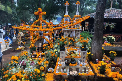 El Día de Muertos es una celebración tradicional mexicana que se lleva a cabo los días 1 y 2 de noviembre. Es una mezcla de elementos indígenas y católicos, y se caracteriza por su colorido y alegría. Durante esta festividad, se cree que los difuntos regresan al mundo de los vivos para convivir con sus seres queridos. Por ello, se les recibe con altares adornados con flores, velas, fotos, comida y bebida que les gustaban en vida. También se realizan distintas actividades, como la elaboración de calaveras de azúcar y la lectura de “Calacas” (versos humorísticos que se burlan de la muerte). Desde 2008, la festividad es considerada Patrimonio Cultural Inmaterial de la Humanidad por la UNESCO.