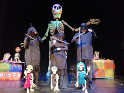 La Compañía Marionetas de la Esquina, dirigida por Lourdes Pérez Gay, presenta la obra La chorcha de las calacas, basada en el libro La ciudad que nos inventa, crónicas de seis siglos, del narrador y periodista Héctor de Muleón, adaptada por Amaranta Leyva.