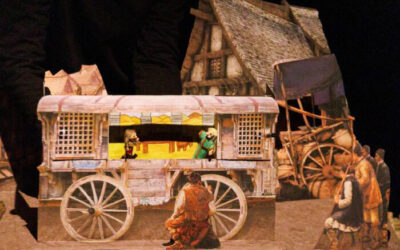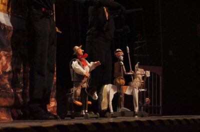 Posteriormente, la historia dio paso a “El retablo de Maese Pedro”, un espectáculo dentro de la obra en el que Don Quijote confunde la función con la realidad, lo que provoca momentos de gran humor y caos. Para dicha escena, los titiriteros emplearon un libro pop-up, y crearon un despliegue visual en el que los personajes de papel cobraban vida ante los ojos del público.