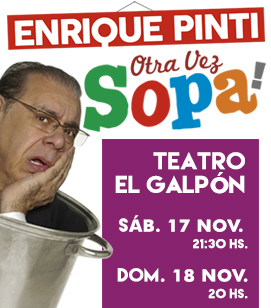 ENRIQUE PINTI. “OTRA VEZ SOPA” es la nueva creación del actor emblemático del humor político del teatro argentino: el gran Enrique Pinti. Un álbum de recuerdos y que ojalá fueran recuerdos…