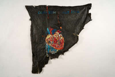 Cecilia Mattos es una artista de extensa trayectoria, caracterizada por la experimentación y la utilización de distintos materiales, siempre al servicio de lo que se quiere decir. Sus últimas búsquedas nos interpelan en un tema tan cadente como lo es la ecología, el cambio climático, utilizando para ello plásticos y materiales de desecho que encuentra en la costa, más precisamente, en el balneario Las Flores, donde vive actualmente. Estas composiciones amorfas que por momentos se estructuran como mosaicos figurativos y conceptuales a la vez. En esta muestra en particular, Cecilia redimensiona el tema, realizando un viaje a su infancia en el campo, en un entorno muy singular, pautado por las diferencias sociales, y la brutalidad de las tareas que se realizaban en la estancia de su padre.